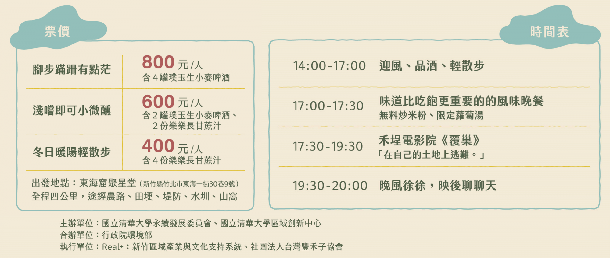 | 場次14:00-14:30出發 | NT$ 400 |
